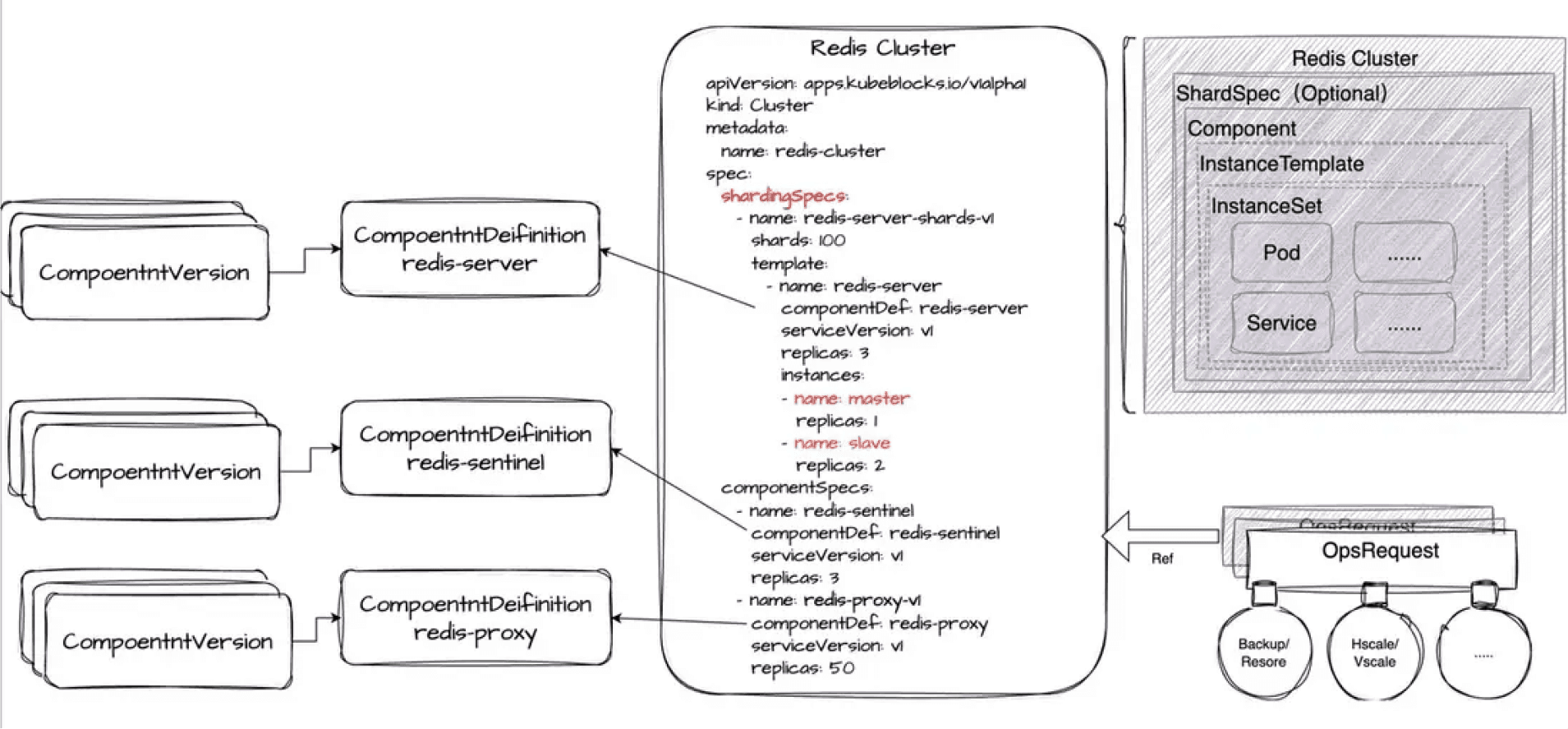 Component - 用于定义 Redis Proxy、Sentinel 和单个 Server 分片。