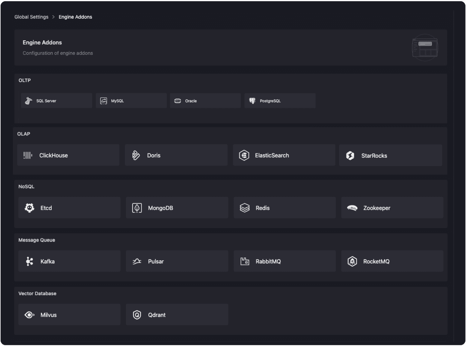 Production-grade databases, message queues, and AI-ready data stack for your applications