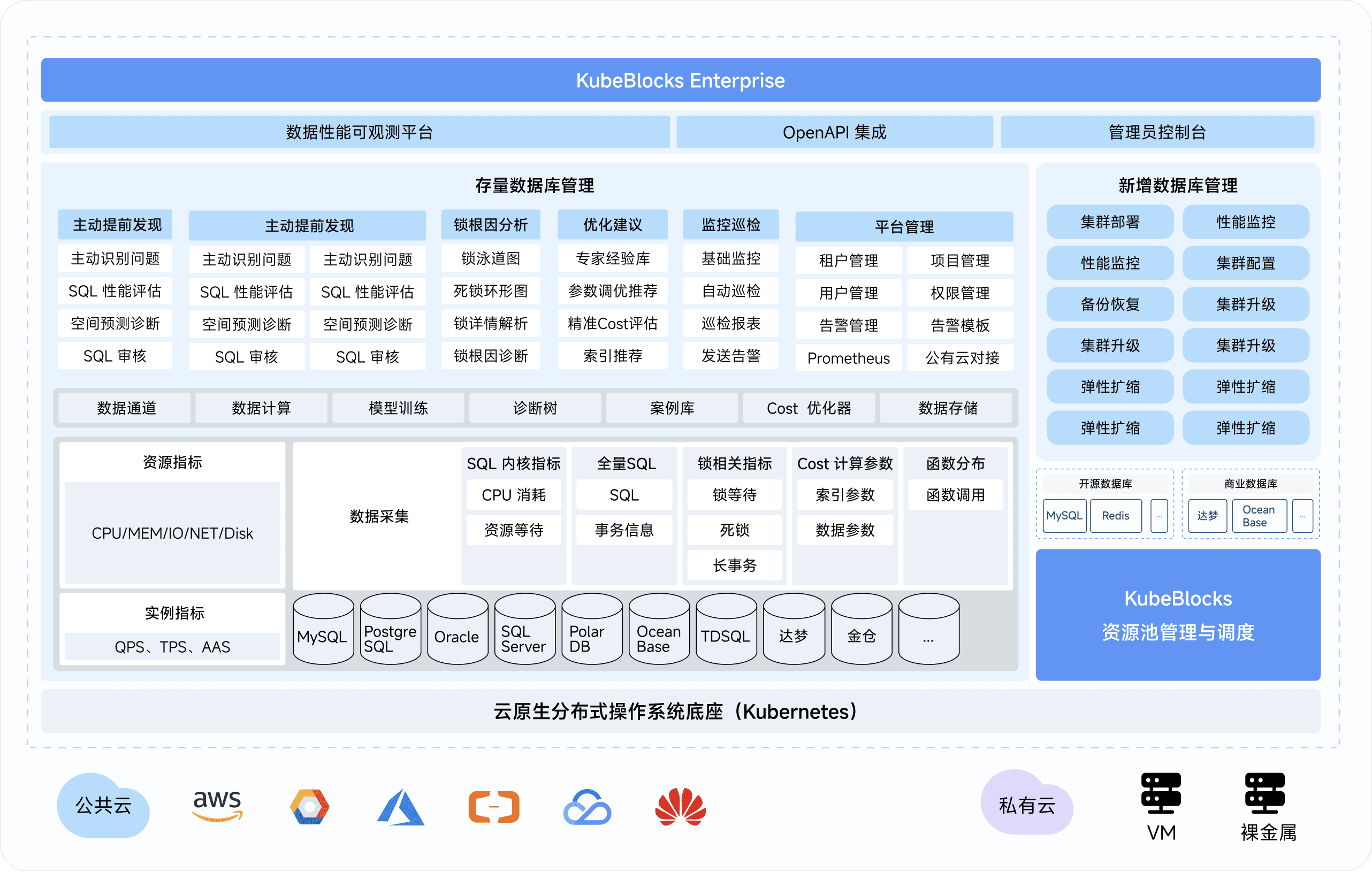 不仅支持管理用户已部署的存量数据库,还支持增量数据库集群,满足用户对数据库的所有业务需求,实现存量与增量集群一体化管理。